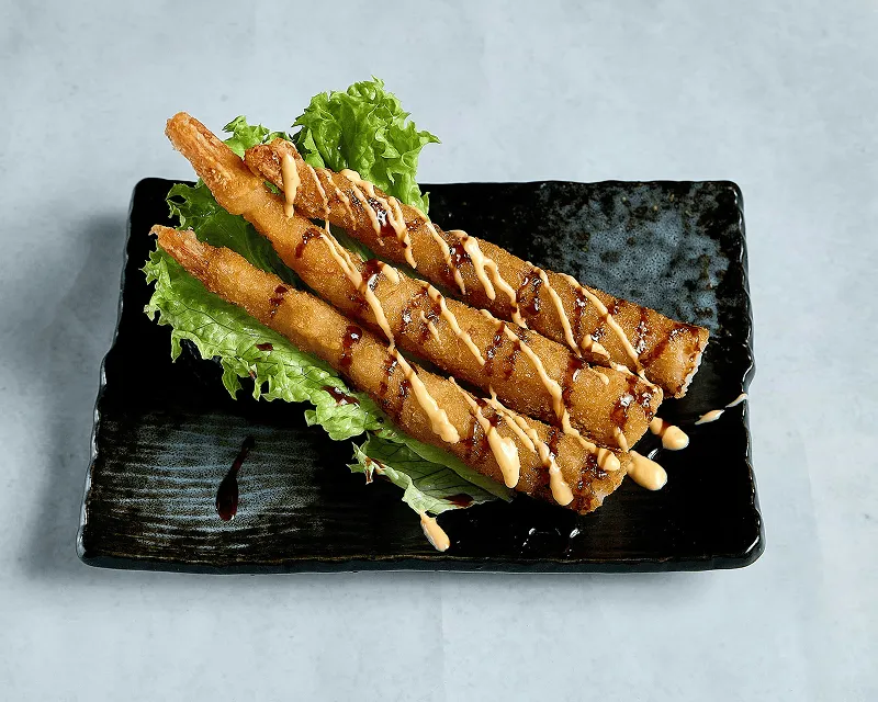 (3 große Stk.) Tempura-Garnelen mit Spezial-Sauce