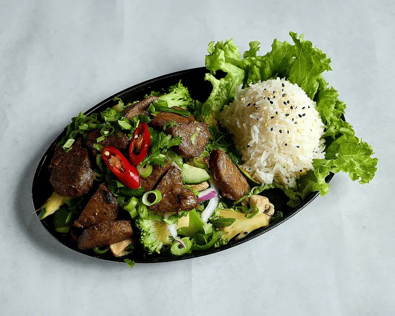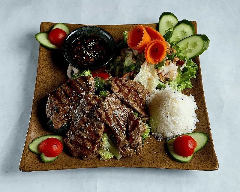 Alle Rind und Hähnchen Spezialitäten, sind mit Halal Fleisch angerichtet.