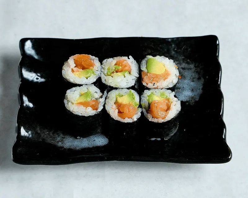 6x Maki Avocado, 6x Maki Sake & Avocado, 6x Maki Ebi, 10x Crunchy Salmon, 2x Nigiri Sake